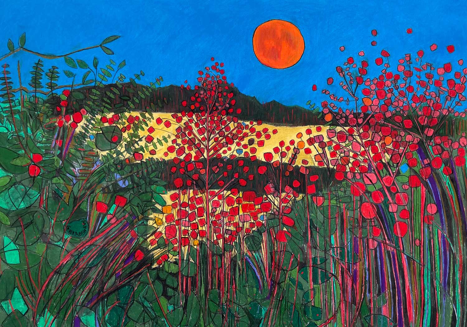 GABRIELLE BRADSHAW has exhibited widely across the UK and in galleries in Paris and Berlin. In recent years she has spent time drawing the landscape of Menorca, Cushendun Northern Ireland and One Tree Hill the woods opposite her home in South London. Her sculptures which she sees as ‘drawings in space’ are made from forged and welded metal. Gabrielle studied at Camberwell School of Art and has a First Class Honours degree in Fine Art Sculpture. Instagram @gabriellebradshawart